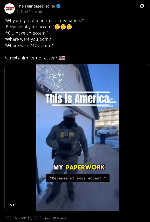 If you find yourself in one of these Minnesotan ‘warzones’, all bets are off, whether you are innocently caught up in the action, or are there protesting ICE’s actions. People are being targeted pretty indisciminately. Actually a citizen and not an illegal? Too bad, guilty until proven innocent.