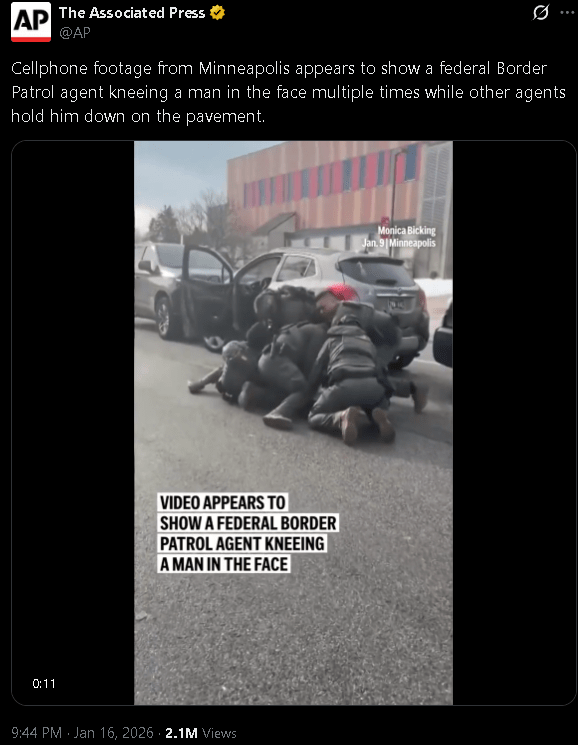 They were filmed repeatedly kneeing a man in the face who was subdues and laying on the ground, posing zero risk. Earlier video shows ICE agents dragging another man from his car (again with no visible justification) and dragging him into their van, apparently unconscious, at a gas station.