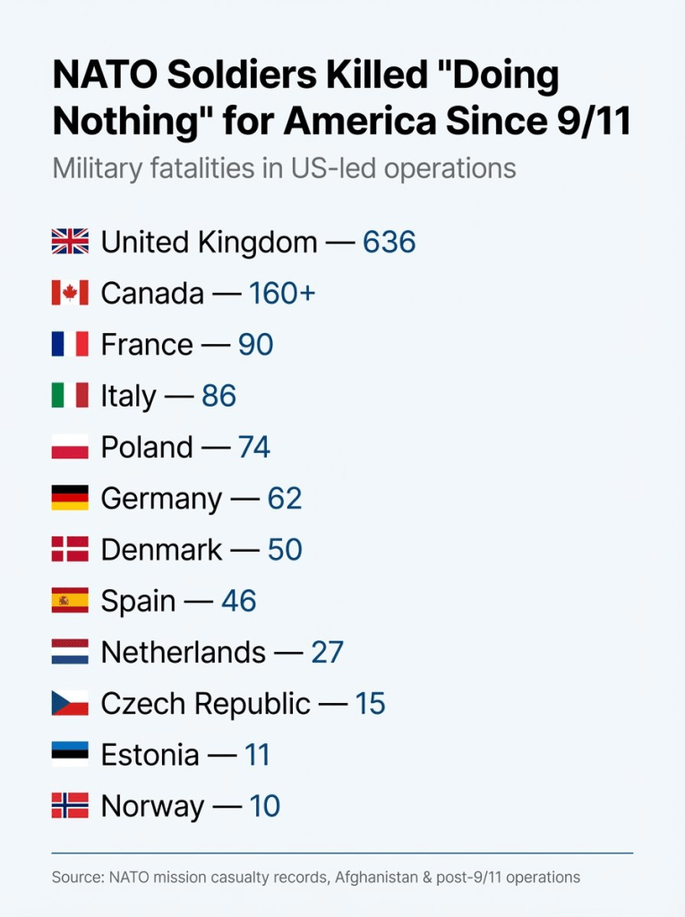 In reality: Article 5 has only been invoked once, after 9/11, when NATO allies immediately came to the United States’ defense. That historical fact alone makes Trump’s claim not just wrong, but insulting to the countries that buried their dead alongside Americans.