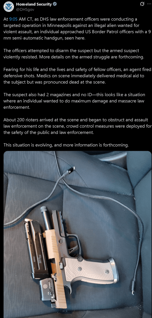 Well, I did say I hoped things would not escalate. Yet within three weeks, here we are again. Another US citizen, this time 37 year old ICU nurse Alex Pretti, paid the ultimate prize for excercising his rights and wasshot by ICE today. And on many points the situation is eerily reminiscent of how officials handled the Renée Good shooting.